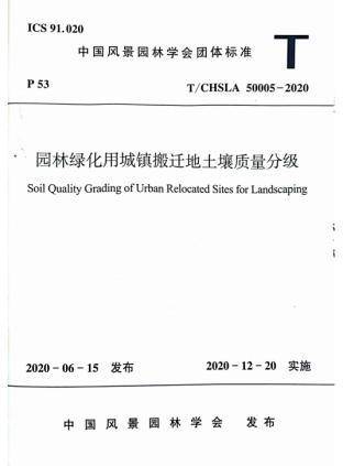 《园林绿化用城镇搬迁地土壤质量分级》(T/CHSLA 50005‒2020),由中国风景园林学会组织制定,于2020年6月正式对外发布,2020年12月实施。