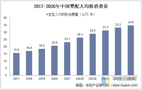 从人均消费量来看,2010年以来的宝宝人均奶粉消费量逐年上升,且2016年以来其同比增速也在持续加快,至2021年已经高达12.04%,近10年的CAGR高达9.54%。