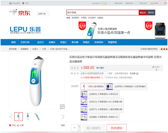 3月3日,新京报记者在京东及天猫看到,国内厂家生产的产品,几乎都显示为无货或预售,有的预售已经到4月才能发货。不过一些海淘店铺可以买到进口品牌。即便是预售,也有商家在对额温枪进行捆绑销售。比如京东乐普医疗器械专营店,乐普小蓝点额温枪单买显示无货,但配套制氧机或雾化器、胎心仪等产品的套餐可以下单预订,预计3月10日18时能发货。一支小蓝点额温枪售价388元,但搭配别的产品的售价分三个档次,分别为699元、799元、4980元。记者询问是否能单买额温枪,别的产品根本用不上。客服表示,目前不能单买,都是套餐。截至3月3日中午,共有264件已预订。